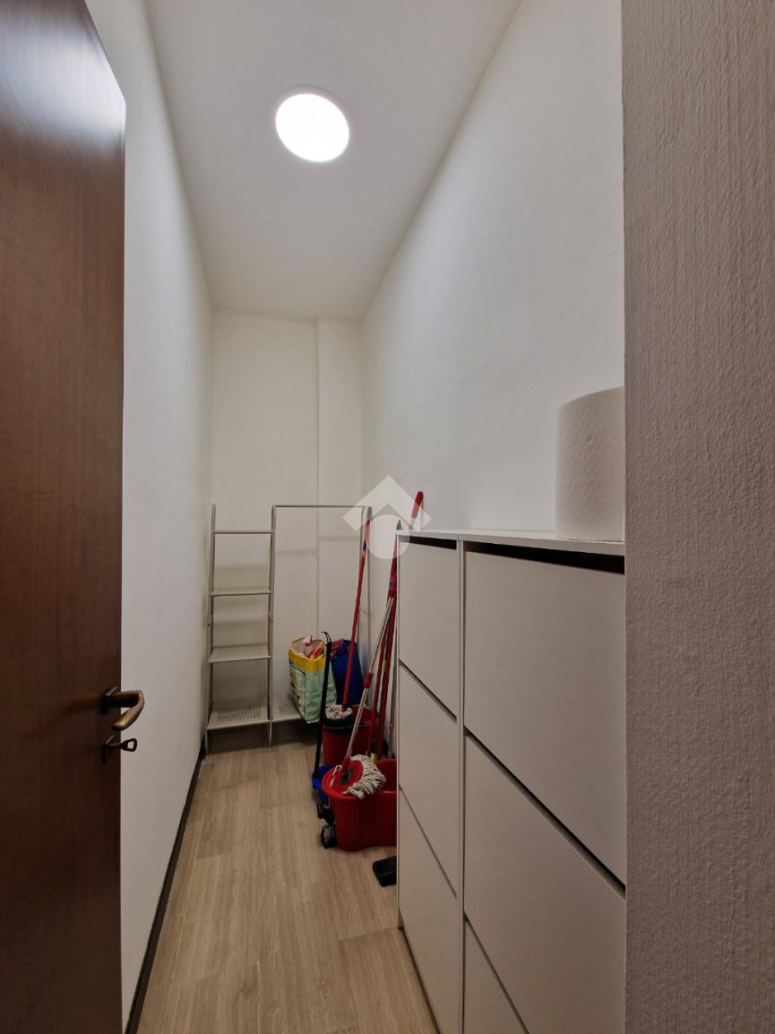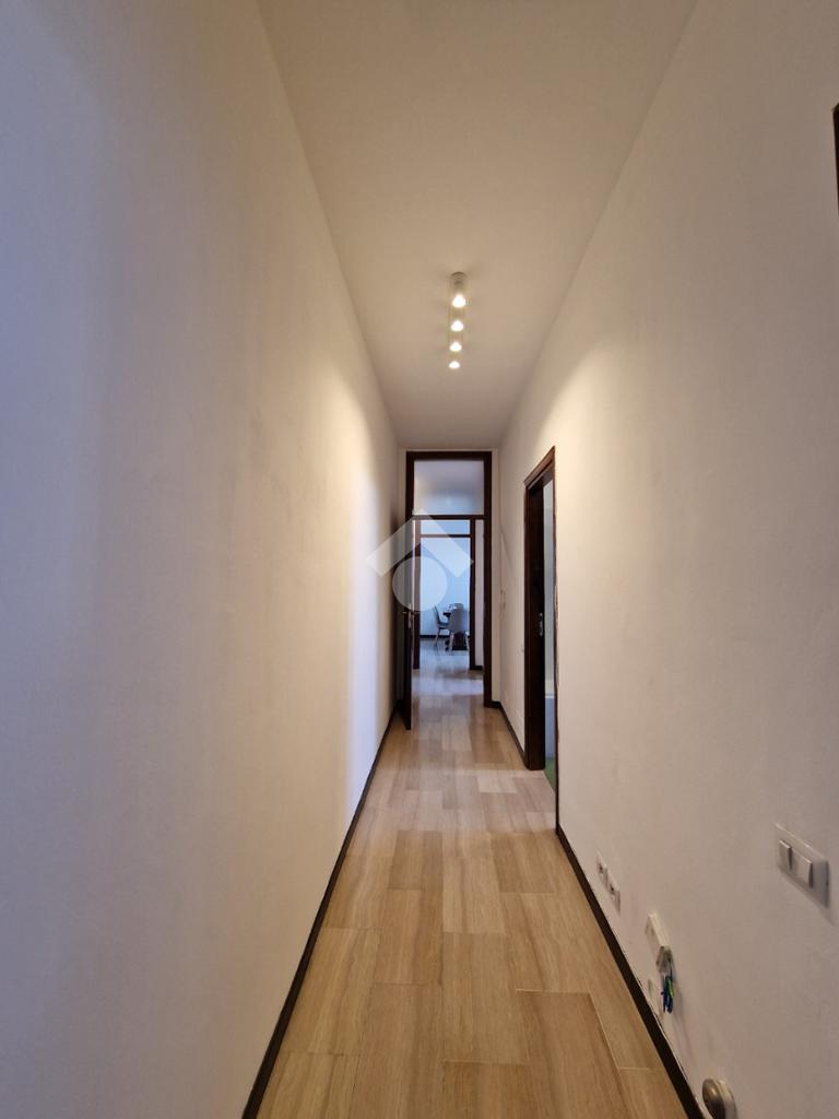 L'ampio ingresso, dove troviamo un comodo ripostiglio, conduce alla zona giorno formata dalla cucina abitabile e dal soggiorno, entrambi con accesso al terrazzino; il disimpegno, invece, porta alla zona notte dove troviamo le due camere da letto, la matrimoniale con cabina armadio, ed il bagno finestrato.