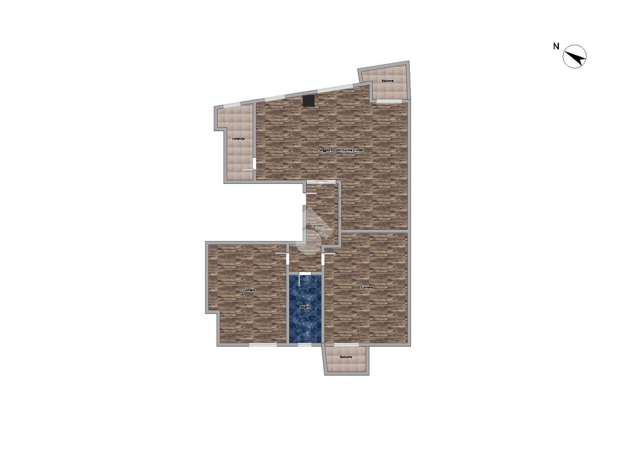 L'ingresso divide la zona giorno dalla zona notte: nella prima troviamo il soggiorno servito dal balcone e la cucina a vista con accesso al comodo locale lavanderia; nella seconda, invece, troviamo le due camere da letto matrimoniali, di cui una con balcone, ed il bagno finestrato con doccia.